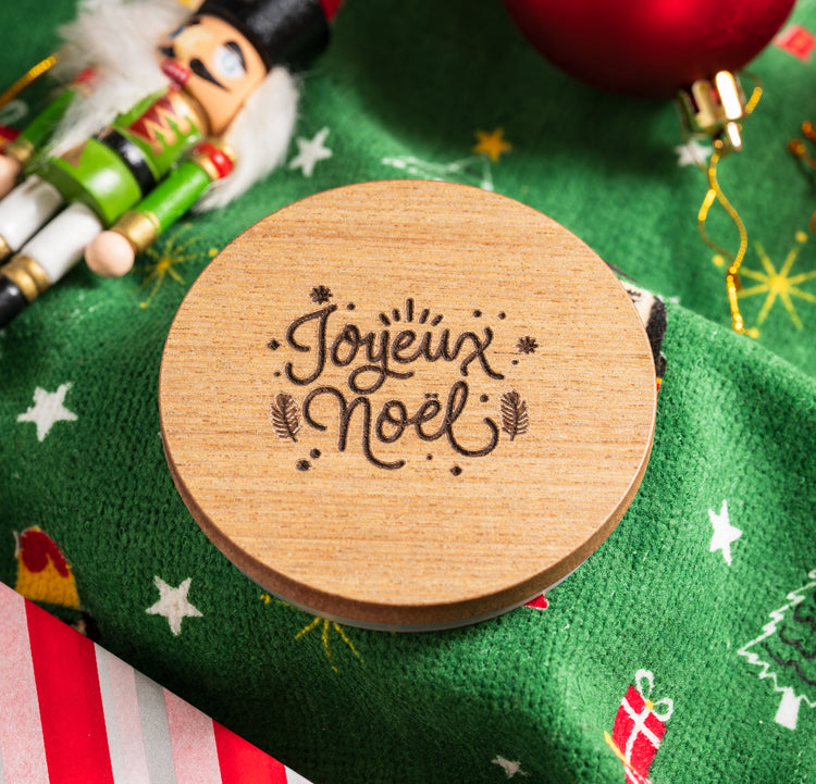 Joyeux Noël - Weihnachtlicher Deckel Aus Naturholz Für 30 cl Kerze